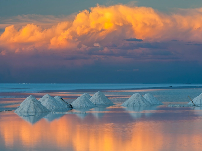 Only few times annually, when particular atmospheric circumstances coincide with seasonal changes, one of the most uncommon and amazing events happens. Usually during the change between wet and dry seasons, these fleeting times cause the whole salt flat to change dramatically in colour. differing microorganisms that survive in the severe circumstances of the salt flat and paired with differing mineral concentrations in the evaporating water create this phenomena. Subtle pink and mild green to intense scarlet and deep purple hues create a natural palette that feels almost synthetic in intensity.