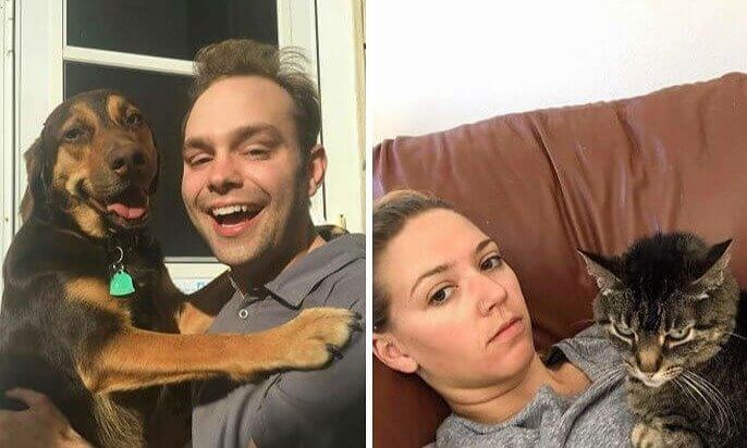 We've always heard that pets and their owners sometimes look alike, but we didn't really think it could be true. Besides, humans and their animals don't share enough DNA to really be that similar, right? Still, take a look at these two pictures down below and tell us the dog hasn't taken exactly after his dad, and the cat hasn't taken exactly after her mom. The best part? These two people are a couple!