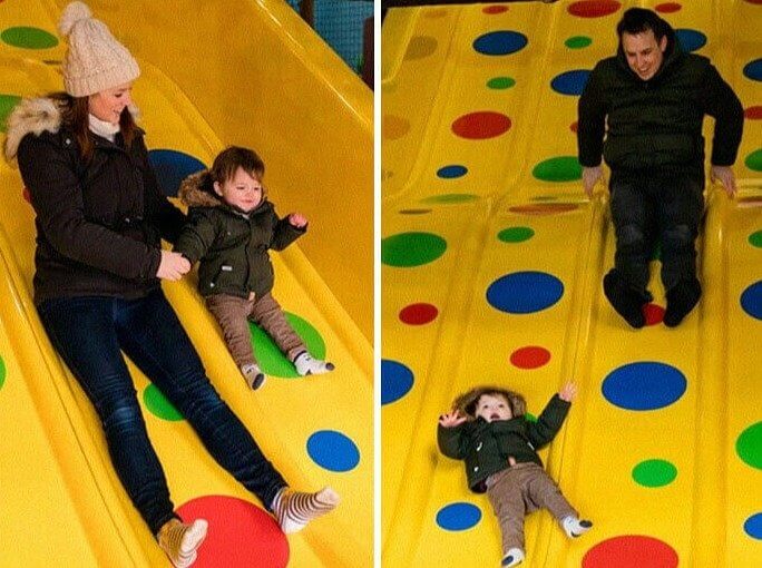 We don't mean to stereotype parents, but in many traditional relationships, Mom and Dad are going to handle the same situation very differently. Here, we're just talking about a simple trip to the fun park, but that doesn't mean Mom and Dad are going to see eye to eye. On the left, we see Mom very carefully sliding down the ramp with her child. On the right, we see Dad, who just hucked the kid down the ramp and then had some fun on his own.