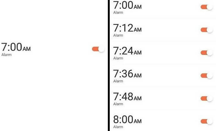 Throughout our studies, we've found that people usually fall into one of two categories when it comes to their morning routine. Either they're the type of person who can wake up easily and get their day started without fail, or they need a big push. We fall into the second category, and so our clock app looks more like that picture on the right. On average, we probably set six alarms every morning.