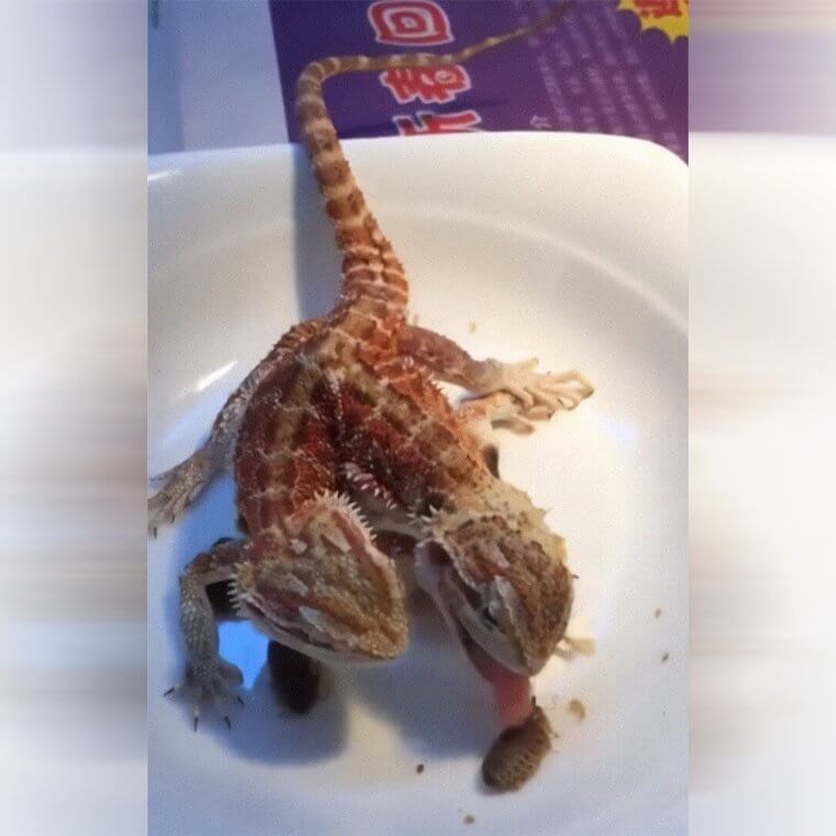 There is nothing cute about this one, this is straight out of a horror film. Anything with two heads is generally considered pretty scary, but this two headed chimera might just take the cake on this one. Not only is it a little bit on the scary side, but it is also in the process of eating live bugs in this photo making it look a bit savage.