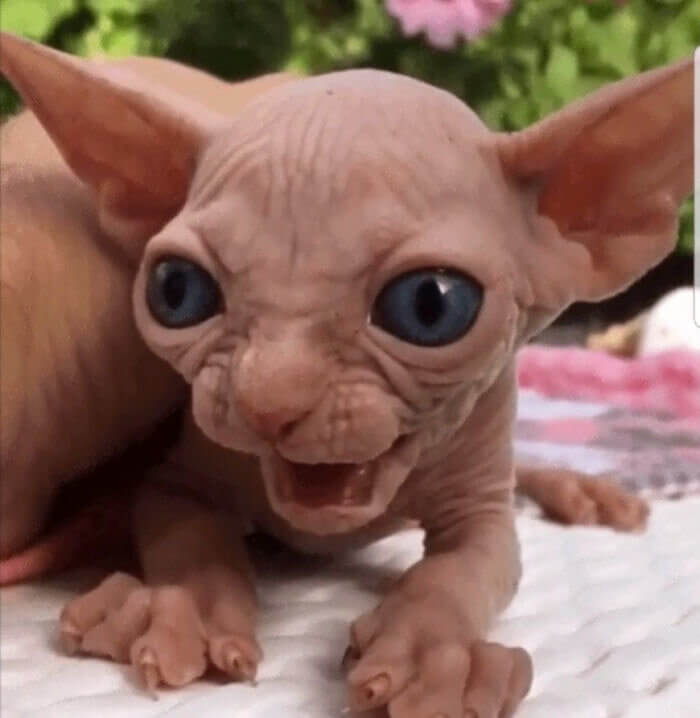 You already know that there are hairless cats out there. You also recently learned that there are very wrinkly hairless cats. And now you are about to learn that there are hairless cats that are also whisker-less. They also apparently have pointy ears, which makes them look even more unique than they would have just with the long list of other items on the list. Unique is a simple word to describe these cats.