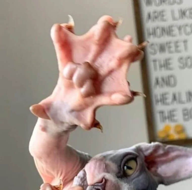 Typically, when a cat lifts its paw, we tend to think it’s a cute and affectionate gesture toward us pet-owning humans. However, in this case, we’re not so sure. Yes, cats are generally adorable, including their sweet little pads that help to protect their precious paws. But there’s always an exception, and here it is. It’s a Sphinx cat, best known for not having any fur, and on average, it costs $1,500-$6,000 to buy one!