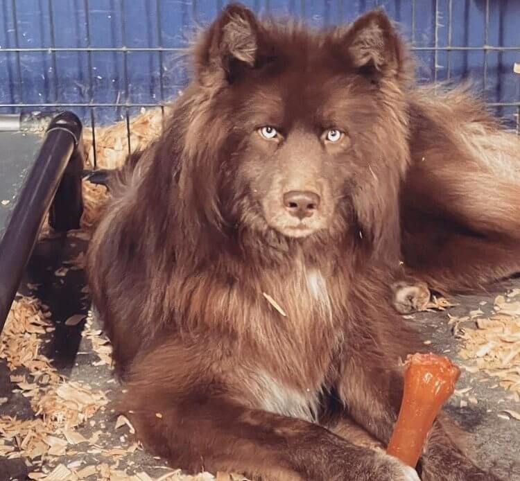 Hereโs a big dog with an impressively luxurious coat of fur and a pair of serious-looking and beautiful eyes. Suppose you were able to suspend reality for just a moment and forget this is a big furry animal. In that case, youโd be forgiven for thinking that the subject of this image looks remarkably like a human. It makes us feel pretty uncomfortable since the dogโs stare is pretty unwavering in its intensity.