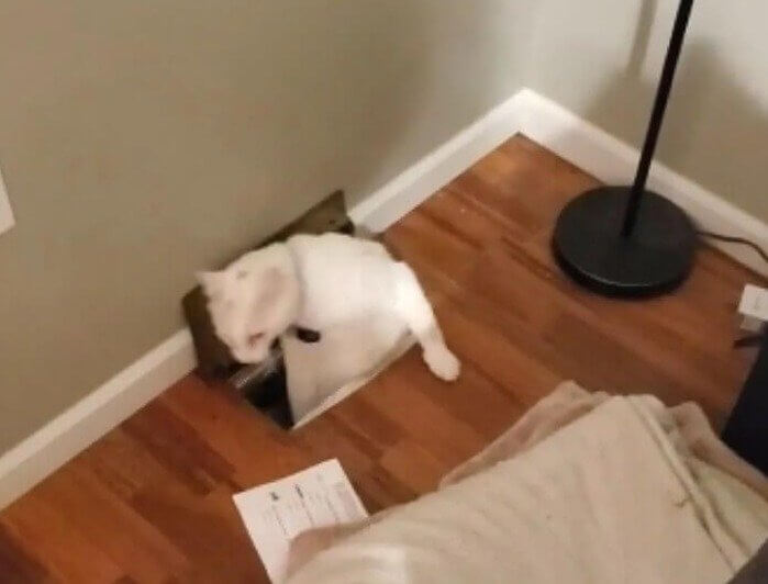 If it were us, weโd ensure all our air vents and small spaces were covered with heavy objects so our cat couldnโt seemingly appear out of nowhere to scare us like this.