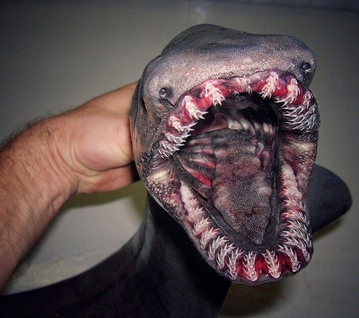 First, we mistook this horrifying-looking creature in the photo for a giant reptile. But, in fact, it's a shark. A frilled shark, to be precise. It's found in the Atlantic and Pacific oceans and is extremely rare with its long snake-like body. We can't help but stare at those deep penetrating eyes and thin spiky teeth - it's enough to make the hairs on the back of your neck stand up!