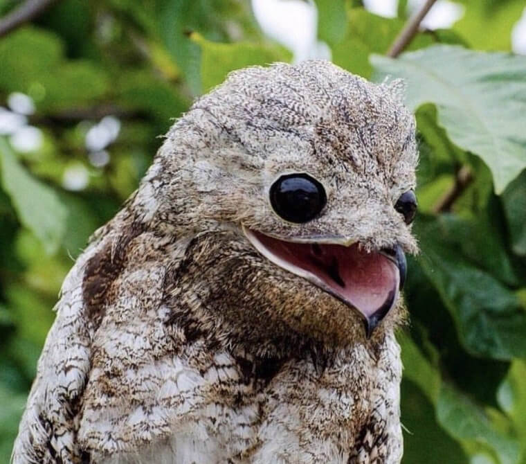 Meet the feathered version of Chucky. This chick’s big eyes look like buttons or black pebbles, and they’re definitely more than a little unnerving, as is its oversized beak. Perhaps this bird’s demonic eyes simply live up to its name: the Ghost Bird or the Great Potoo. They’re commonly found in South America and have a blood-curdling scream. These insect-eating nocturnal birds look a little like owls, but they’re definitely not related.