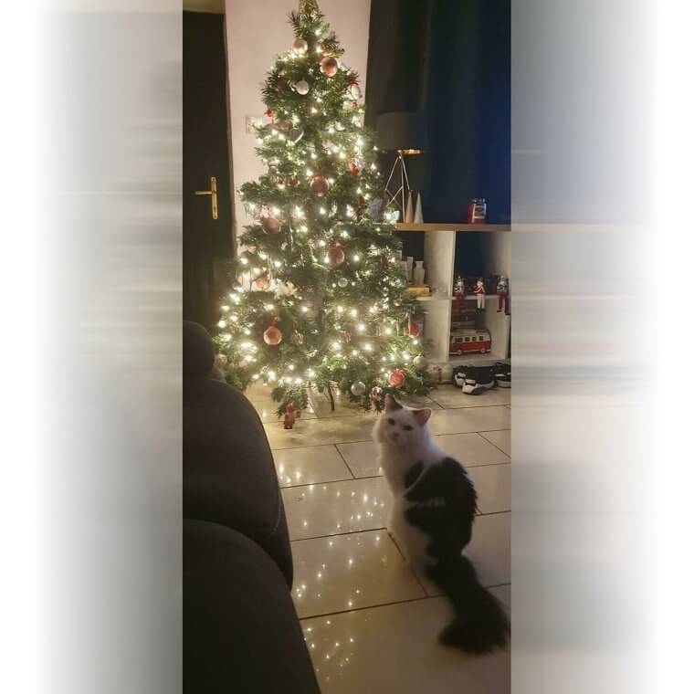 Sure, the cat that's sitting on the floor is pretty obvious, but you'll need to look a little harder to find the second one. Let's just say that it must really love the Christmas tree.