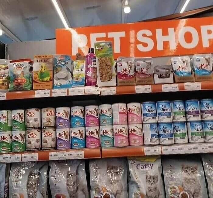 Hidden amongst the pet food is an animal that you wouldn't normally see inside, so we'd encourage you to check the top shelf for a little birdie searching for seeds!