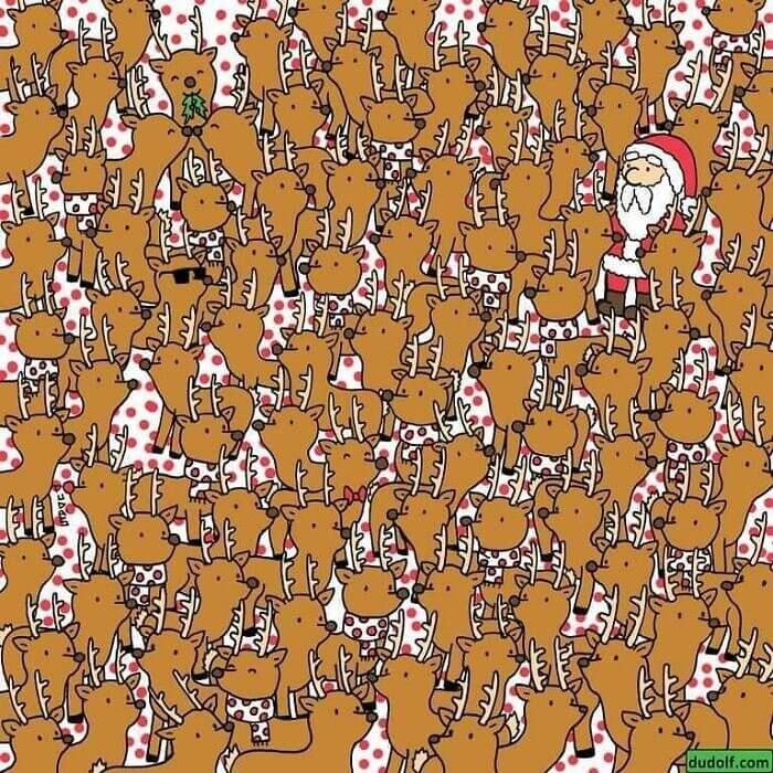 We love an optical illusion as much as the next guy, and this is the perfect example of a fun and festive optical illusion that took us much longer than we'd like to admit to finish. So, can you do it? Can you find Rudolph for Santa? With so many reindeer and so many red spots in this picture, it makes it incredibly hard for your eyes to focus on a single reindeer with a red nose.