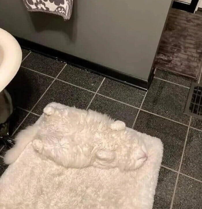 Have you ever felt personally victimized by your cat? You're not alone. Cat owners around the world buy their cats the best beds and toys in the business, but they don't appreciate them. Instead, they find the strangest places to sleep - like the fluffy rug in the bathroom that allows them to become one with the white fluff. Actually, what are we saying? There's no cat here. Shh, be quiet.