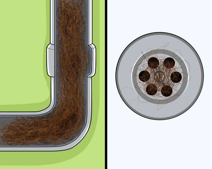 Les cheveux sont une cause principale des bouchons de salle de bain, surtout pour les personnes aux cheveux longs. Lorsque les cheveux passent dans le drain, ils peuvent se coincer, s'accumuler et former de grosses boules qui obstruent le passage. Ces boules de cheveux capturent d'autres débris comme du savon, de la saleté et plus encore, aggravant les bouchons.