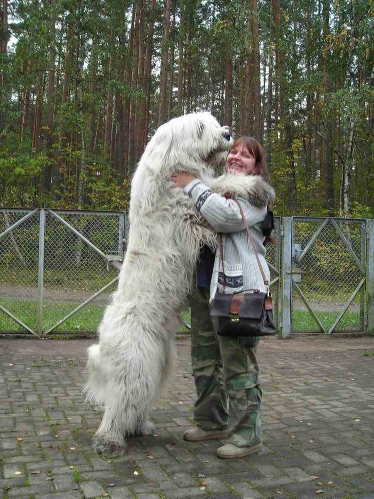 Quand un chien est assez grand pour se dresser sur deux pattes et atteindre presque la taille de son humain, les moments amusants ne manquent pas. Une petite danse, un pas maladroit, un câlin en hauteur, tout devient un souvenir. Ces instants montrent à quel point la relation peut être joyeuse et pleine de complicité. Leur taille ajoute un côté spectaculaire, mais leur douceur reste au centre. On sourit, on rit, et l’on se dit que la vie est plus légère quand un géant affectueux décide de partager la piste, même pour quelques secondes.