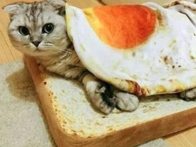 Baigné dans la lumière douce de l'après-midi, Moustache le chat se prélassait dans la cuisine sur un coussin en forme de tranche de pain. Le coussin épousait parfaitement sa forme, lui donnant l'apparence amusante d'une miche vivante et adorable. Ses humains trouvaient un amusement sans fin dans sa pose ressemblant à du pain, riant à la vue. Moustache ronronnait avec contentement profond, perdu dans la chaleur et le confort. Alors que la lumière du soleil dansait autour d'elle, elle régnait en reine de son trône en forme de pain, un symbole de cocooning et des joies simples de la vie.