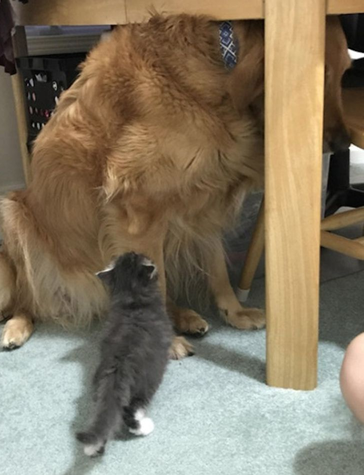 Malgré l'énorme différence de taille, le minuscule chaton a réussi à devenir le patron de la maison, au grand amusement de tous ceux qui assistent à leurs interactions amusantes. Ce renversement de rôles hilarant montre que le courage et l'attitude comptent souvent plus que la taille, et les animaux ne cessent de nous surprendre avec leurs personnalités uniques et attachantes.