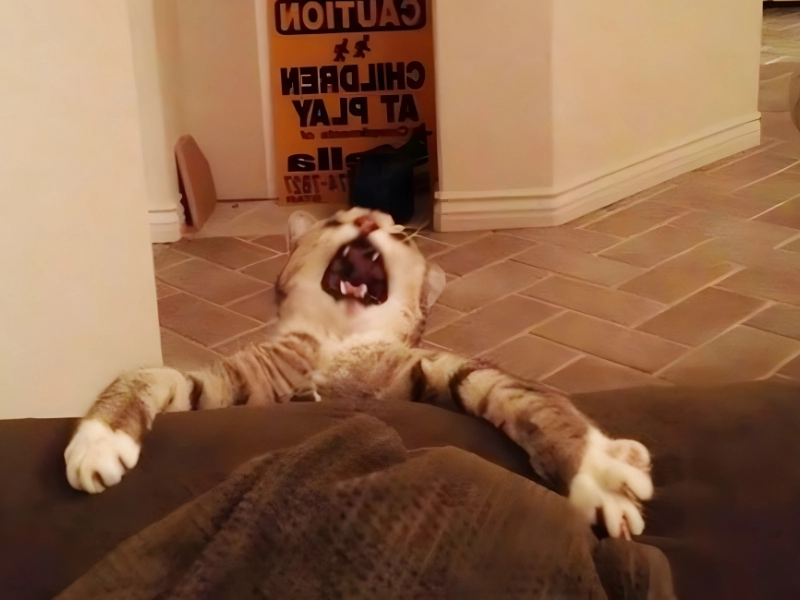 Les chats adorent grimper sur les canapés, et en acheter un à un prix abordable est judicieux si vous avez un félin à la maison. Même quand ils tombent, les chats sont imperturbables et gardent leur dignité. Cette scène est comme une version féline d'une scène dramatique, avec notre ami roux dans le rôle principal. Il a probablement causé le désordre lui-même, mais il tire le meilleur parti de la situation avec grâce.