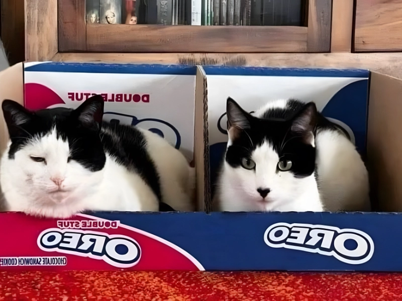 Le uploader a attendu patiemment pour capturer ce cliché parfait. Il a placé deux boîtes côte à côte, et les chats ont fait le reste de manière adorable. Le plus petit chat s'est glissé dans une boîte, le plus grand dans l'autre, complétant parfaitement la scène. Le résultat est cette photo adorable et parfaitement timingée qui a ravi les internautes.