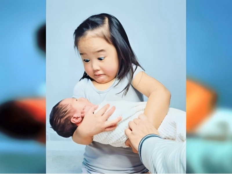 Une petite fille qui tient son frère nouveau-né dans les bras offre une image pleine de douceur et de sincérité. On lit à la fois la fierté et l’attention dans sa posture, comme si elle prenait cette mission très au sérieux. Ce type d’instant résume merveilleusement la tendresse fraternelle, celle qui commence souvent par un geste prudent et un regard curieux. La scène est simple, mais très émouvante, parce qu’elle montre une affection spontanée, sans calcul. C’est le genre de souvenir que l’on garde précieusement, et que l’on aime revoir plus tard, quand les années ont fait leur œuvre.