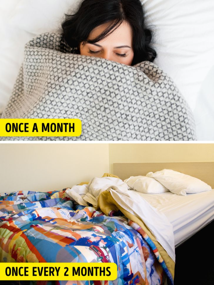 Les couvre-lits, puisqu'ils ne touchent pas la peau aussi souvent que les draps ordinaires, n'ont besoin d'être lavés qu'environ une fois tous les deux mois régulièrement. Cela les aide à rester frais et propres sans usure inutile du tissu.