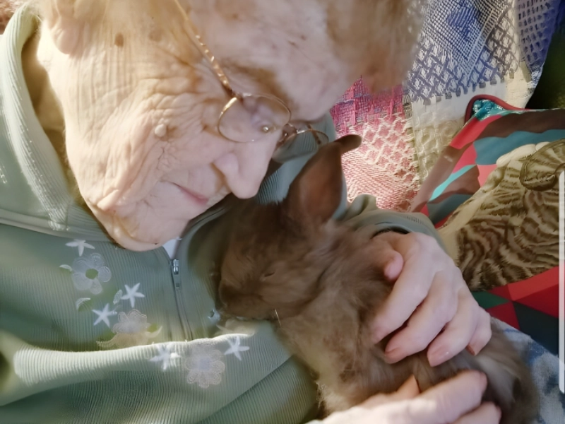 Les animaux offrent généreusement une compagnie unique, précieuse et irremplaçable comme aucune autre créature ne peut le faire. Dans cette photo attendrissante et émouvante, un jeune lapin rend visite affectueusement à son arrière-grand-mère, et le bonheur visible, rayonnant et sincère sur les deux visages est absolument indéniable et magnifique.