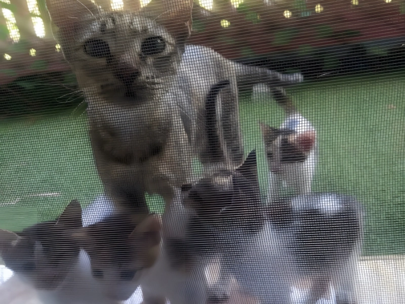 On dit souvent et fréquemment que les chats possèdent une intuition étrange, mystérieuse et remarquable, et cette photo le prouve magnifiquement et de manière convaincante. Lorsqu'une maman chat et ses chatons étaient dans le besoin urgent et désespéré, elle savait exactement et instinctivement où aller précisément pour obtenir de l'aide et du secours. Elle s'est approchée courageusement de la bonne porte au bon moment, et la personne généreuse à l'intérieur a accueilli chaleureusement toute la famille féline dans son foyer accueillant et sûr.