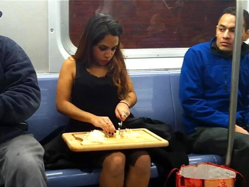 Qui dit qu'il faut attendre d'être à la maison pour commencer la préparation du dîner. Ce passager débrouillard et pratique commença la préparation du repas directement dans le train, coupant des légumes ou assemblant des ingrédients avec des mains expertes et habiles. L'arôme familier et réconfortant de la cuisine maison flotta agréablement dans la rame, remplissant l'air de chaleur et la promesse d'un délicieux repas à venir.
