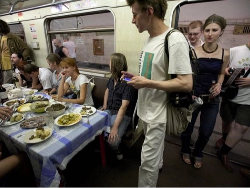Pourquoi ne pas transformer votre trajet en véritable fête joyeuse. Ce groupe animé et enthousiaste transforma le métro en salle de banquet festive, partageant généreusement nourriture, rires spontanés et joie avec tous autour d'eux. Leur esprit contagieux et leur bonne humeur rendirent le voyage véritablement inoubliable, prouvant que la célébration peut arriver n'importe où et à tout moment.