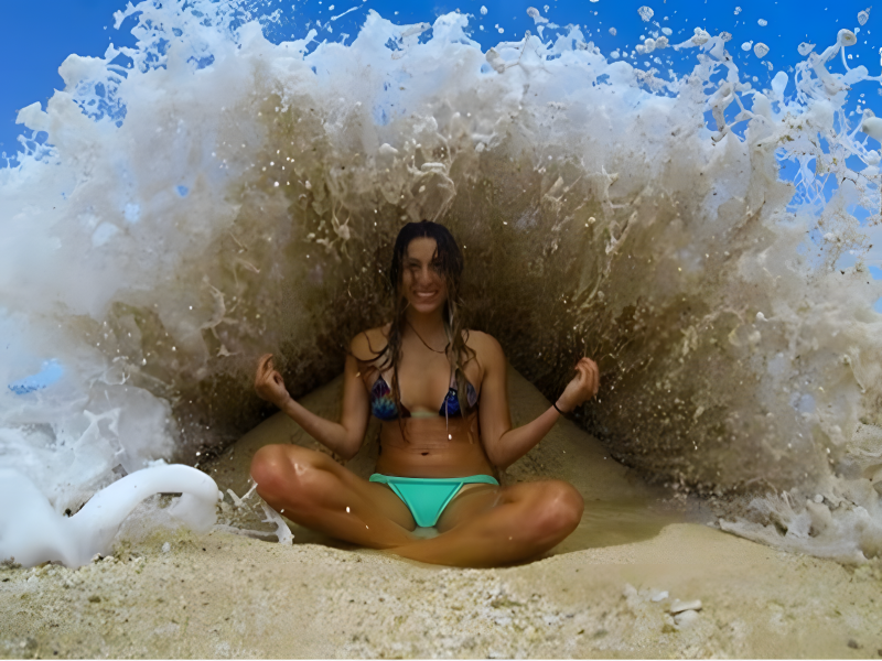 La photo de plage idéale : soleil éclatant, sable fin et une atmosphère espiègle, juste avant un petit événement inattendu. Le décor est magnifique, et l’énergie du moment est légère, presque insouciante. Ce qui fait sourire, c’est cette sensation que la scène va changer d’un instant à l’autre. Un rappel agréable, même les moments parfaits deviennent encore meilleurs quand l’imprévu y ajoute de l’humour.