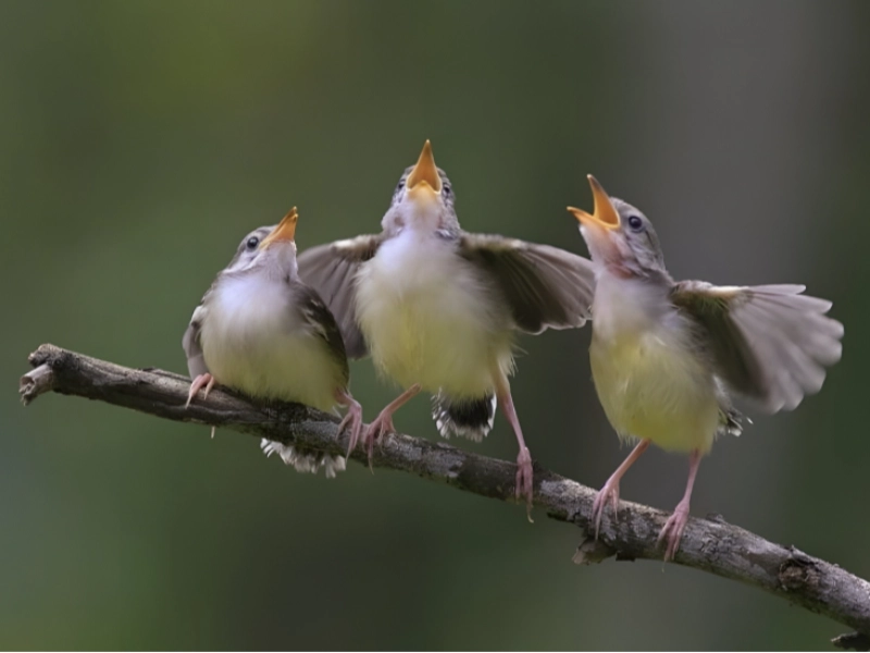 Quoi de plus réjouissant qu’un trio d’oiseaux qui semble chanter d’une seule voix. Bec ouvert et posture vive, ces oiseaux donnent l’impression d’une petite chorale improvisée, pleine d’entrain. La scène évoque une harmonie de groupe, où chacun participe à sa manière à un instant collectif. Ce n’est pas seulement une démonstration sonore, c’est aussi une image de coordination, de présence et de communication. On imagine facilement les échanges, les appels et les réponses qui animent la vie dans les arbres. Cette photographie capture un instant bref, mais riche en énergie, et elle invite à écouter autrement la nature, comme un paysage vivant où chaque son a sa place.