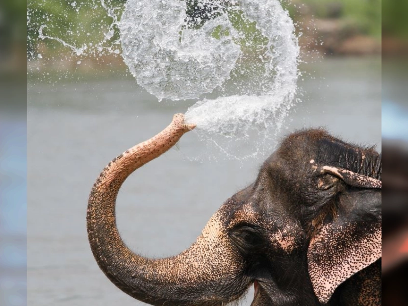 La trompe de l’éléphant se prolonge dans l’eau avec une élégance tranquille, créant de petites ondulations qui accrochent la lumière. Peut-être cherche-t-il à boire, à se rafraîchir, ou simplement à explorer ce qui se cache sous la surface. La lenteur des gestes, la précision du mouvement et l’attitude sereine donnent une impression de calme profond. Observer un animal aussi imposant interagir avec délicatesse rappelle la finesse qui existe dans la nature, même chez les plus grands. C’est une scène apaisante, qui évoque un équilibre simple entre l’animal et son environnement.