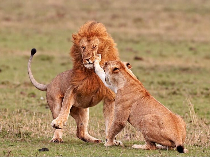 Une lionne donne une petite tape espiègle, et la réaction du lion est tout simplement mémorable. On y lit une forme de comédie naturelle, comme si la scène se jouait avec un sens du timing parfait. Le contraste entre la gravité habituelle de ces animaux et cette interaction légère rend le moment encore plus savoureux. Ce cliché donne un aperçu vivant des relations au sein du groupe, faites d’habitudes, de personnalités et de codes subtils. Il rappelle aussi que même les animaux les plus impressionnants connaissent des instants de jeu, de complicité et de tendresse.
