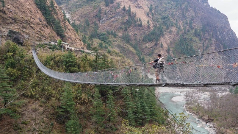 Long de plus de cent mètres et suspendu à une hauteur impressionnante, il est vital pour l'économie locale. Bien qu'il puisse sembler fragile aux yeux des étrangers, il est robuste et utilisé quotidiennement. Pour les randonneurs, c'est un point de passage mémorable offrant des vues spectaculaires sur les sommets himalayens majestueux.