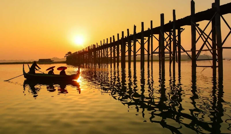 Ce pont est un lieu de vie vibrant, emprunté quotidiennement par les moines en robe safran et les villageois. Il est particulièrement célèbre pour ses couchers de soleil spectaculaires, où la silhouette du pont se découpe sur le ciel flamboyant, créant une image emblématique de la sérénité birmane.