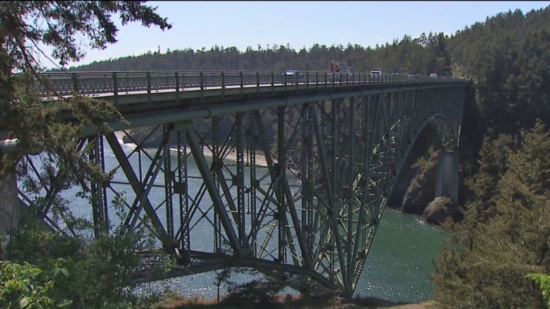 Composé de deux travées s'élevant à cinquante-cinq mètres au-dessus de l'eau émeraude cristalline, l'ouvrage offre des vues imprenables sur les îles San Juan et le Puget Sound. Les jours de brume ou de vent fort, l'atmosphère y devient mystique et intense. Achevé en mille neuf cent trente-cinq, ce pont historique est un chef-d'œuvre d'acier qui attire les amoureux de la nature et les photographes du monde entier.