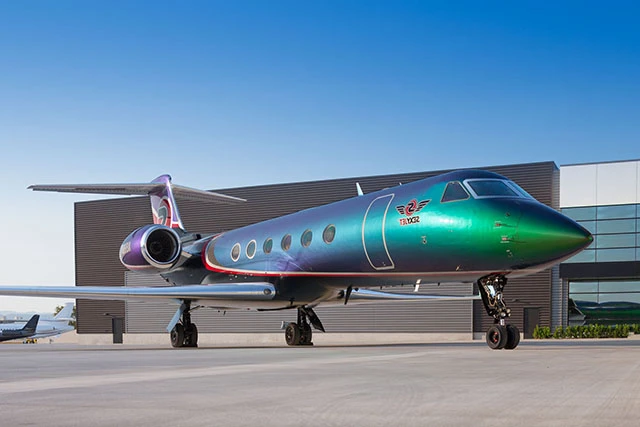 Surnommé par ses admirateurs, ce Gulfstream GV exploité par une compagnie d'aviation représente le summum du design aéronautique de luxe. Sa peinture caméléon, rare et coûteuse, change de couleur selon l'angle de la lumière, passant de nuances profondes à des éclats métalliques, témoignant d'un savoir-faire exceptionnel. L'intérieur est à la hauteur de cet extérieur époustouflant, offrant une gamme complète d'équipements haut de gamme, incluant une cuisine gastronomique et des espaces de travail raffinés. Propulsé par deux moteurs de prestige, il allie performance et esthétique. Ce jet est l'exemple parfait de la fusion entre la personnalisation artistique et le luxe ultime.