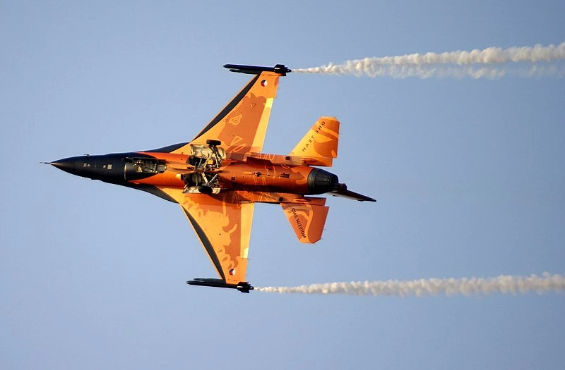 Le F-16 orange vif de l'Armée de l'air royale néerlandaise est une rupture audacieuse avec les couleurs de camouflage gris standard. Cette livrée personnalisée, utilisant la couleur nationale des Pays-Bas, rend l'appareil instantanément reconnaissable et célèbre l'identité néerlandaise. Faisant partie d'une équipe de démonstration, ce jet sert à la fois de symbole de prouesse militaire et d'ambassadeur volant lors des meetings aériens. L'orange éclatant contrastant avec le ciel et l'agilité du F-16 créent un spectacle inoubliable, démontrant le pouvoir de l'expression nationale à travers l'art sur fuselage.