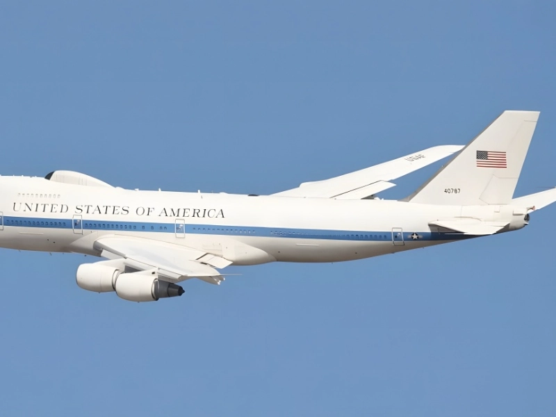Le Boeing E-4B, surnommé « avion de commandement suprême », sert depuis 1974 de centre de commandement volant pour les dirigeants américains. Doté de systèmes de communication robustes et d'une protection contre les impulsions électromagnétiques, il assure le commandement et le contrôle même lors de situations extrêmes. Il reste un outil vital pour la sécurité nationale et la continuité gouvernementale.
