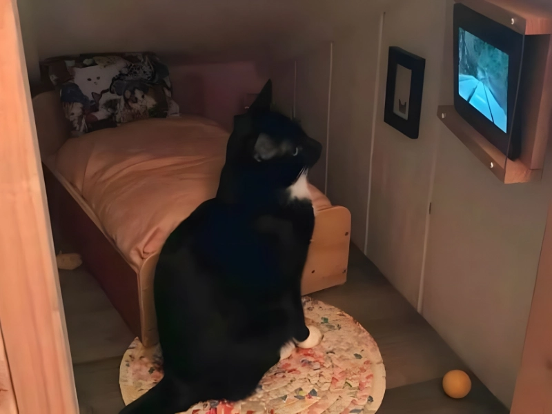 Appareil potentiel : Google Pixel Où le trouver : Best Buy et boutiques Google Prix moyen : entre 400 et 1 200 dollars Ce chat absolument adorable possède son propre petit coin privé aménagé sous l'escalier, rappelant la chambre d'une célèbre histoire de fiction, mais en version nettement plus luxueuse et douillette. L'espace est aménagé avec un soin méticuleux : un tapis rond moelleux, une balle jouet aux couleurs vives, un petit cadre photo décoratif et un lit confortable avec un coussin assorti sur le thème des félins. Le clou du spectacle reste sans conteste sa télévision personnelle. Se prélassant tranquillement devant l'écran, le chat semble parfaitement à l'aise et satisfait, profitant pleinement de sa résidence élégante tout en suivant son programme favori avec une attention captivante et soutenue.