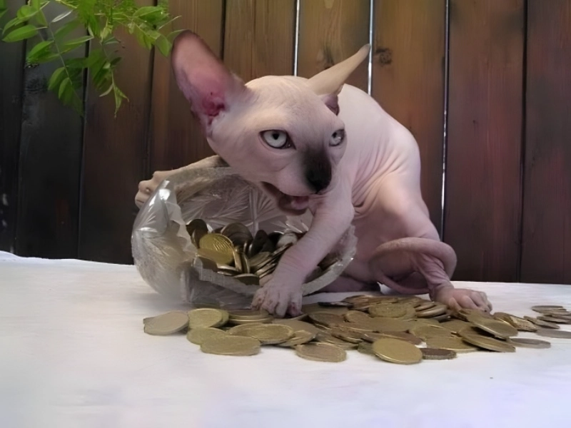 La scène ressemble véritablement à quelque chose sorti d'un film excentrique, avec un chat ayant cette apparence distincte comme gardien mystérieux. Le regard intense du chat et sa posture protectrice sur les pièces créent une image bizarre mais absolument amusante. Son apparence singulière ne fait qu'accroître le drame de la situation, le faisant ressembler à un gardien mythique de trésor ancien. Tant de questions surgissent naturellement : Ce chat accumule-t-il des pièces depuis longtemps. Où les a-t-il obtenues exactement. S'agit-il d'une sorte de compte d'épargne félin. La posture défensive du chat suggère qu'il est prêt à défendre son butin précieux, nous rappelant que les chats ne cessent jamais de nous surprendre avec leurs habitudes étranges et leur apparente compréhension des idées humaines, comme la valeur de l'argent.