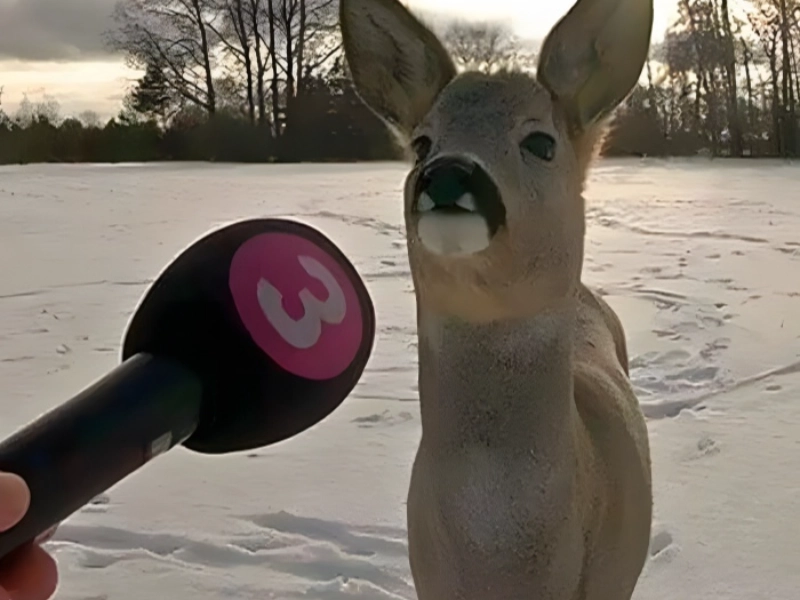 Cette photo capture un moment parfaitement synchronisé qui rend les informations locales si divertissantes et mémorables. Le regard écarquillé du cerf et l'approche sérieuse du reporter, comme s'il menait une vraie interview professionnelle, créent une scène absolument mémorable. Savoir que l'histoire parle d'une amitié animale improbable la rend encore plus touchante et attachante. L'expression du cerf semble dire clairement : "Je ne m'attendais pas à passer aux informations juste pour me faire un nouvel ami." La façon dont le cerf est cadré comme un interviewé souligne le pouvoir du contexte. Parfois, cependant, l'absence de contexte rend les choses encore plus fascinantes. Ce reportage a probablement laissé les téléspectateurs à la fois riants et touchés par l'histoire d'amitié interspécifique.