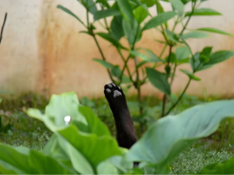 Imaginez un chat allongé de tout son long dans une herbe bien verte, au soleil, comme s’il profitait d’une pause parfaitement méritée. Et même dans cet état de détente absolue, il trouve encore l’énergie de tendre une patte, tranquillement, pour réclamer un petit geste complice. Ce n’est pas une demande pressante, plutôt une invitation calme à participer au moment, comme si vous étiez deux partenaires de détente.