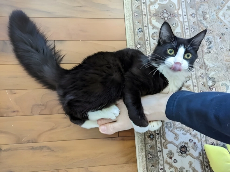 Voici le grand classique du chat pot de colle, dans une version particulièrement convaincante. Ce petit félin s’accroche à votre bras avec une détermination tranquille, comme si vous étiez son point d’ancrage officiel. Que vous tentiez de travailler, de vous reposer, ou simplement de traverser une pièce, il a une seule priorité : rester collé à vous, coûte que coûte. C’est touchant, un peu envahissant, et surtout très drôle à observer.