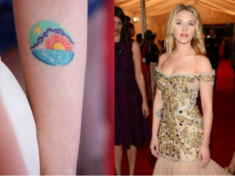 Contrairement à beaucoup de stars qui préfèrent l'encre noire classique, Scarlett Johansson n'hésite pas à utiliser la couleur vibrante. L'une de ses pièces les plus remarquables est un paysage représentant un lever de soleil sur l'océan, tatoué sur son avant-bras gauche. Ce dessin vibrant symbolise l'espoir, le renouveau et la promesse que chaque jour offre une nouvelle chance.