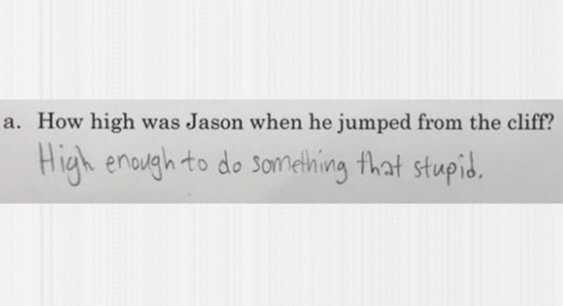 Based on how this student answered, it might be hard to figure out what the question was about, but we can promise you that it was a math question that needed some mental math to get the right answer. But this student thought the inquiry was more of a chat and jokingly said that Jason was "high enough to do something that stupid." It's clear that there was a communication breakdown between the two.