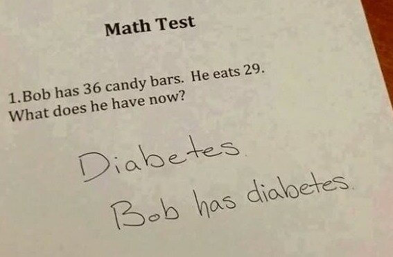 The teacher may not have wanted this response on a math test, but at least this student can tell when someone is eating badly.