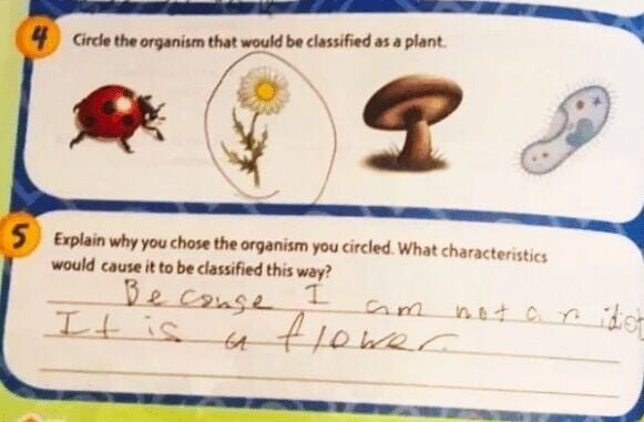 It might be annoying when tests require you to explain something you already know is true. It may seem like a lot of work to write out how you got to an answer, but that's how you receive the mark. But this student was not in the mood to be looked down on. Their response, "Because I am not an idiot," shows that they don't enjoy being talked down to.
