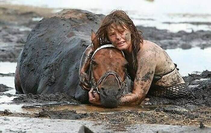 The effects of people on nature can be hard to deal with. But we frequently forget how much people love the creatures around them. Nicole Graham is the delighted owner of a horse. She held her horse's head above the muck for three hours so it wouldn't suffocate when it became mired in the mud. Fortunately, rescue came just in time to save the horse.
