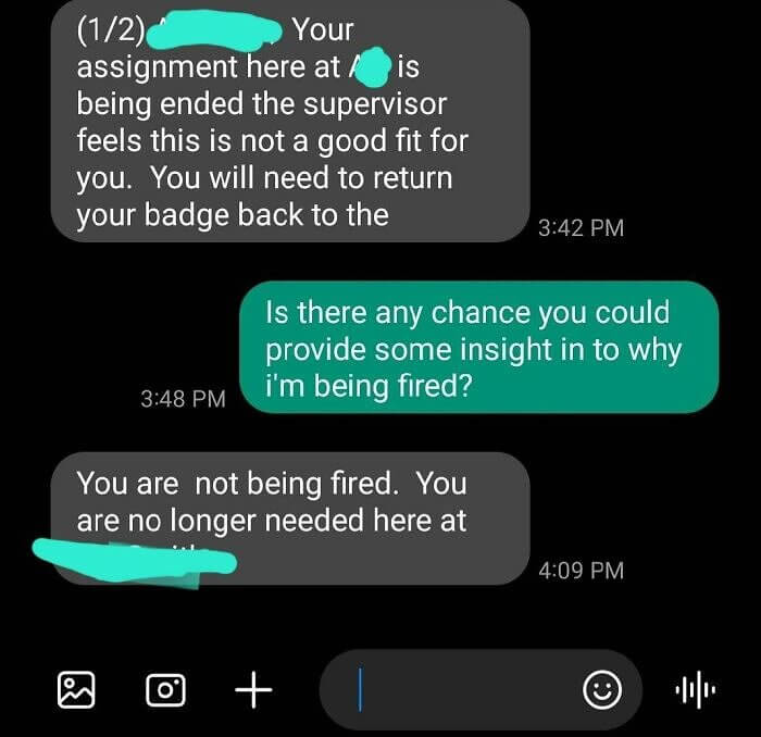 Why do managers usually try to terminate you without saying so? They must think we're all dumb or something. "Hey, we just wanted to let you know that you're not really working out, but don't worry, we're not firing you. We're just...kind of firing you. But not really."