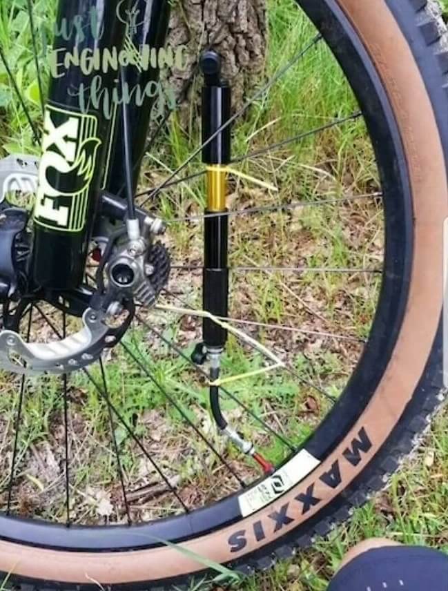 This guy was creative, though, and he was able to use his handheld pump to fill up the tire and then lock it in place so he could resume riding.