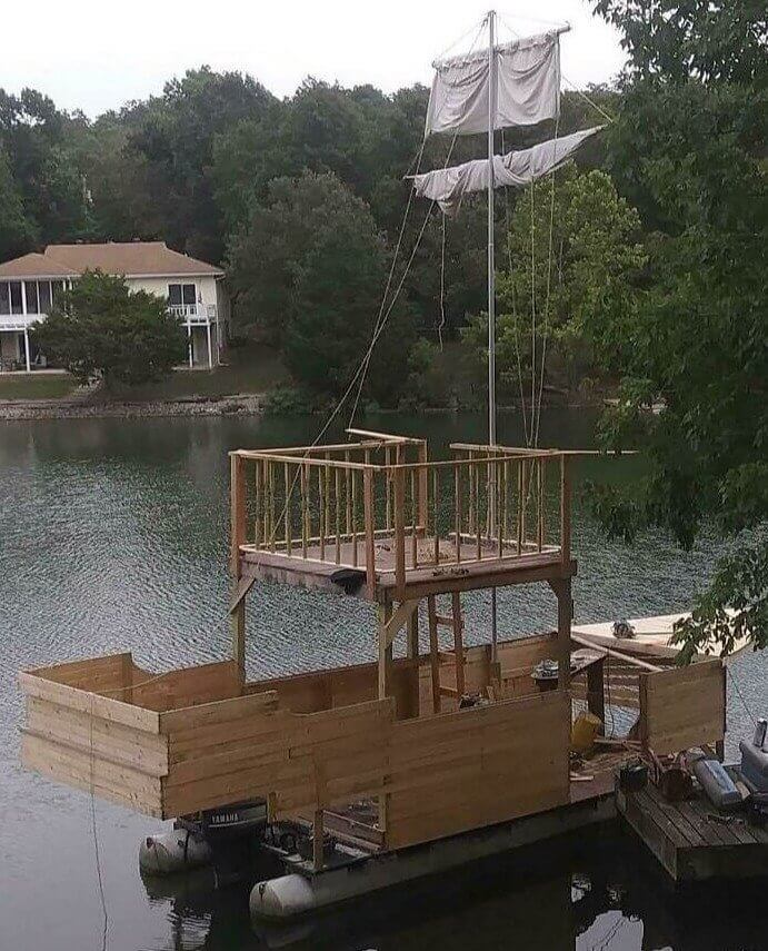 Dinghies are great because they let people who don't have a lot of money sail on open water and enjoy the freedom of being on the water. But they don't feel the same as a big pirate ship. The owner of this dinghy felt the same way and decided to fix up their small boat and turn it into a pirate ship. Now they can sail the open seas as a pirate.